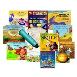 I purchased PENpal books from the company Language Lizard. As stated on their website, "The award-winning digital PENpal Audio recorder Pen allows readers to hear content in many languages by simply touching the pen to books, charts, labels and other learning resources. You can download pre-recorded sound files for free to turn many of our bilingual picture books into 'talking books’.”